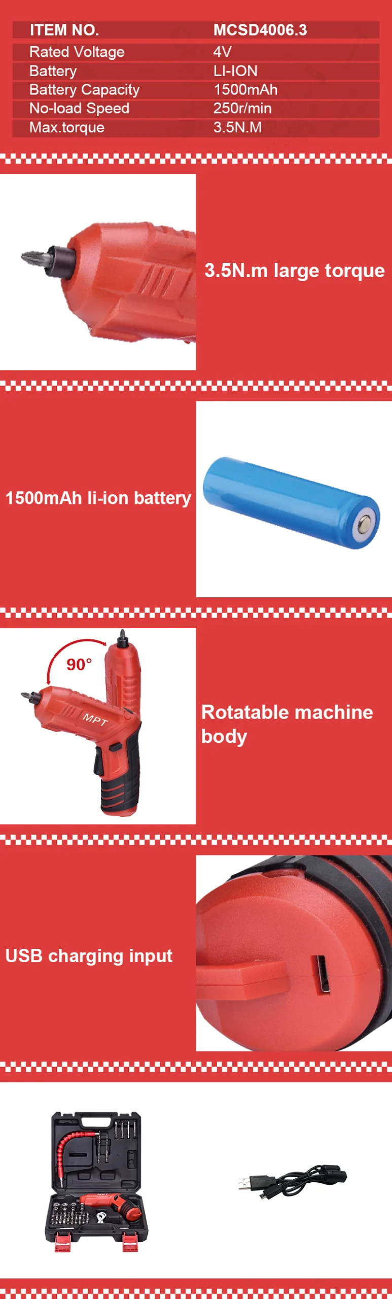 3. Meet various screwing and wood drilling work in our daily life. It can screw more than 200 screws when fully charged.