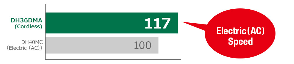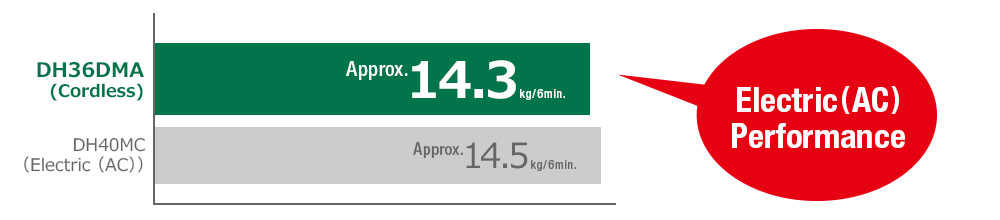 MULTI VOLT battery and a brushless motor. It delivers a drilling speed and demolition performance comparable to its corded counterpart. Speed of the DH40MC rotary hammer indexed at 100.
