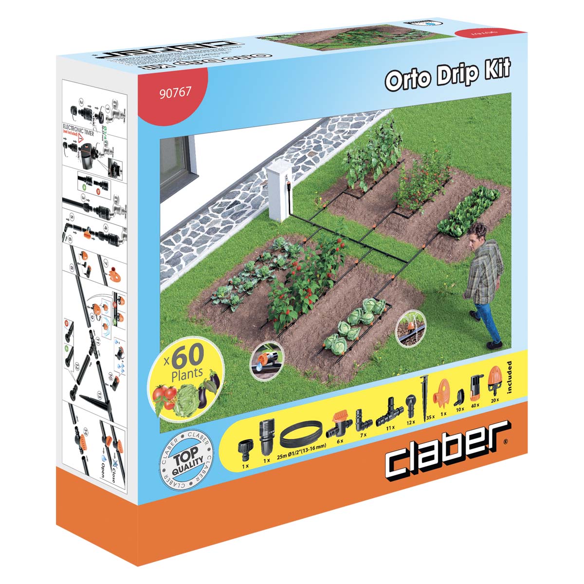 This ready-to-use kit is the best solution for watering vegetable gardens, adjusting the flow and adapting it to the different plants needs. This kit contains all the components for setting up 6 irrigation zones and watering up to 60 plants, with adjustable drippers (40 end-of-line and 20 shrubblers) and 25 m of main hose.