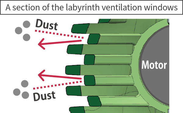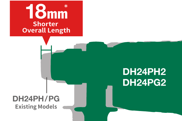 Vs. the existing model DH24PH/PG. Double ventilation windows (inlets) in labyrinth construction does less harm to the motor by reducing the ingress of dust and debris into the tool. Located on the side of the tool body for easy operation